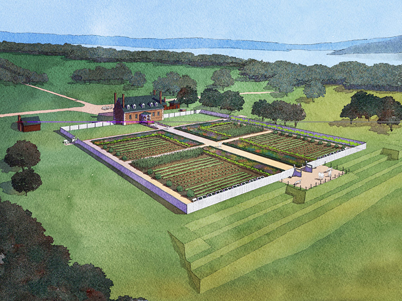 Archaeological surveying yielded a great deal of information about the structure of the garden. Additional research has contributed to our understanding of the plants that were important to George Mason. Staff are selecting plants for the garden by consulting, also, research into what fruits, vegetables, flowers, and shrubs were available in the 18th century, with concessions made for vegetables that no longer exist as well as selections chosen for sustainability and disease resistance.