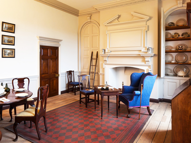While George supervised construction in Virginia, his brother Thomson secured an interior designer in London—William Buckland. Buckland brought the latest interior styles with him and collaborated with another indentured servant, master carver William Bernard Sears, to bring those designs to life. The result was a home full of rich carvings, elegant colors, and refined spaces that reflected the Masons’ high social status.