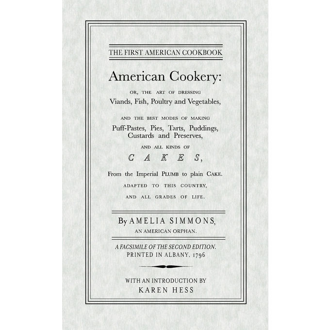 American Cookery was the first cookbook in America. Reproduced here is the rare second edition printed in 1796. Includes a new introduction by noted food historian Karen Hess. Paperback. Made in United States of America