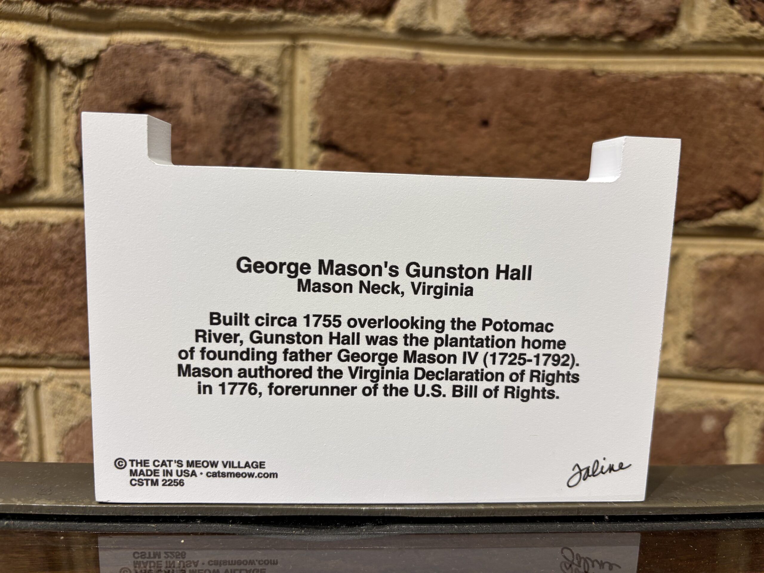 Cat’s Meow Village pieces are designed on 3/4″ thick wood with colorful details, and the back includes written facts and the history of Gunston Hall. Cat’s Meow Village is so named because of their black cat mascot, Casper, is hiding on every piece! Rest assured, you are doing business with a woman-owned, pure American company over 42 years old and they are located in Wooster, Ohio.