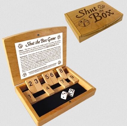 The goal is simple yet challenging: roll the dice and flip down as many numbers as possible. At the end of your turn, any numbers left standing are added together as your score—the lowest score wins. Turn all the numbers down and you’ve achieved the ultimate victory: SHUT THE BOX!